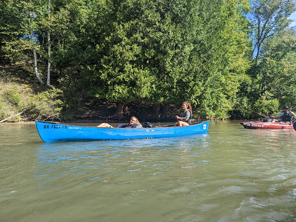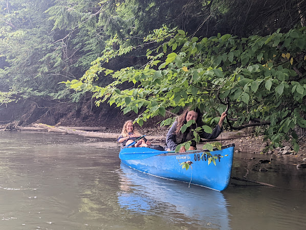 Wir kamen als zweites Auto an - nicht um 14:00 wie geplant, sondern erst um ~15:20 herum, dabei haben wir nicht Mal wirklich Pause gemacht. Nach und nach kamen auch die anderen an, wobei der OAC (anm. Outdoor Adventure Club) mit seinen beiden Booten (ja die haben ihre eigenen Boote mitgenommen) und Hailey (eine freundliche Transvestite, die viel zu viel mithatte) als letzte beiden Autos (in der genannten Reihenfolge) ankamen. Wir (Lena und ich) spielten dann, bis die Fahrer die Autos zur Abholstelle gebracht hatten, Karten mit Matt (PhD vor 2 Wochen verteidigt in Aerospace Engineering) und Molly. Das war ein bissl Tricky, weil die Überschneidung bei Kartenspielen nicht so groß ist, aber wir haben einfach ein neues gelernt.