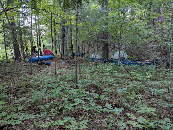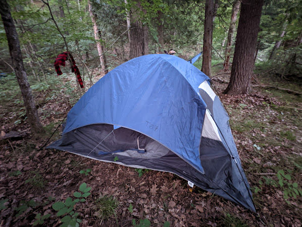 Wir suchten dann relativ bald ein Nachtlager am Fluss, weil es schon dämmerte und wir nicht im Dunkeln unser Lager mitten im Wald aufschlagen wollten - ich hatte ein 5 Personen Zelt für mich allein und stellte die Zelte von Dante und mir, mit ihm gemeinsam auf, was natürlich auch noch ein Aufräumen der Lagerstelle bedeutete.