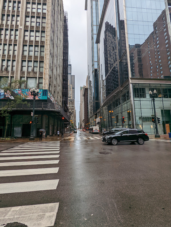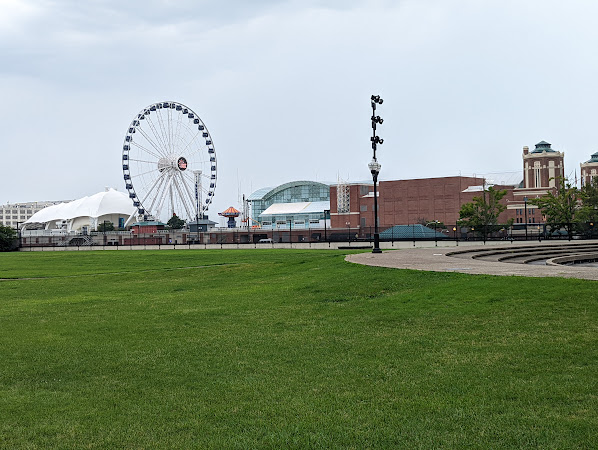 Nachdem ich noch vom Vortag ziemlich mitgenommen war, und mir meine Beine wundgescheuert hatte (ja ich weiß, Moritz du solltest besser aufpassen), bin ich etwas später los und bin bei Regen quer durch die Stadt gelaufen, bis ich nördlich des Navy Piers war. Dort ist auf dem Gelände des Wasserreinigungswerks (ich schätze für Trinkwasser, und nein ich will nicht wissen obs eine Kläranlage war) ein kleiner Park auf dem man hinaus spazieren in den Lake Michigan hinein.