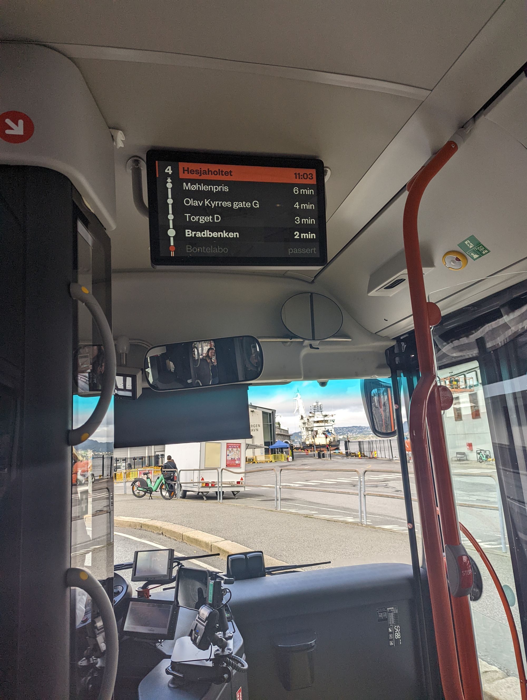 Ich marschierte irgendwo herum und nachdem es nichts cooles mehr zu sehen gab, ging es für mich zurück. Ich sprang in den ersten Bus, der irgendwie Richtung Zentrum fuhr. Die Busse sind so modern, die zeigen sogar an, wie lange der Bus zu den nächsten Stationen braucht. Außerdem gibt es draußen sogar Anzeigen, wie voll ein Bus ist. Dies wird zwischen 0 und 3 kategorisiert. Wie das entschieden wird, weiß ich leider nicht. Dass es nach Gewicht geht, kann ich mir nicht vorstellen. Wahrscheinlich kann der Busfahrer es anklicken.
