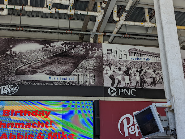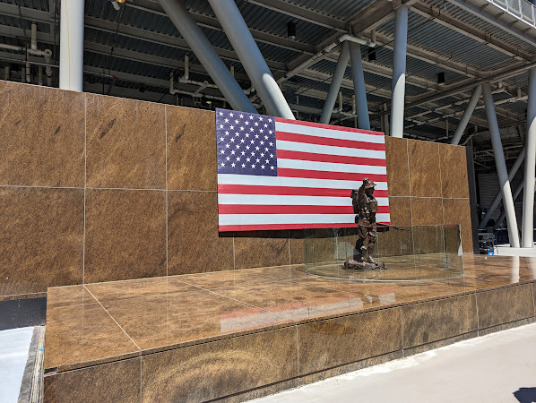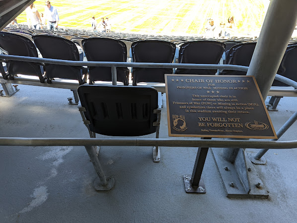 Drinnen in den Zuschauerrängen angekommen schauten wir uns, eh wie für amerikanische Verhältnisse üblich, einen Film über die Geschichte des Stadions an. Der war recht lehrreich, aber der Ton hätte besser sein können. Nach dem Film wurde uns der leer gelassene Sessel gezeigt, welcher nie befüllt wird - dieser steht symbolisch für die im Krieg vermissten Soldaten, welche diesen Platz füllen sollen.