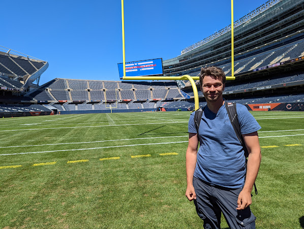 Um 12 ging es dann Richtung Stadion und ich schaute mir das Stadion noch von außen an, bevor ich dann reingelassen wurde für die Führung. John Finnegan, ein Alter Haudegen, erzählte uns über eine Stunde lang Fakten über das Stadion und seine Chicago Bears (sie wurden vor 102 Jahren für 100$ gegründet, sind jetzt 5 Mrd wert).