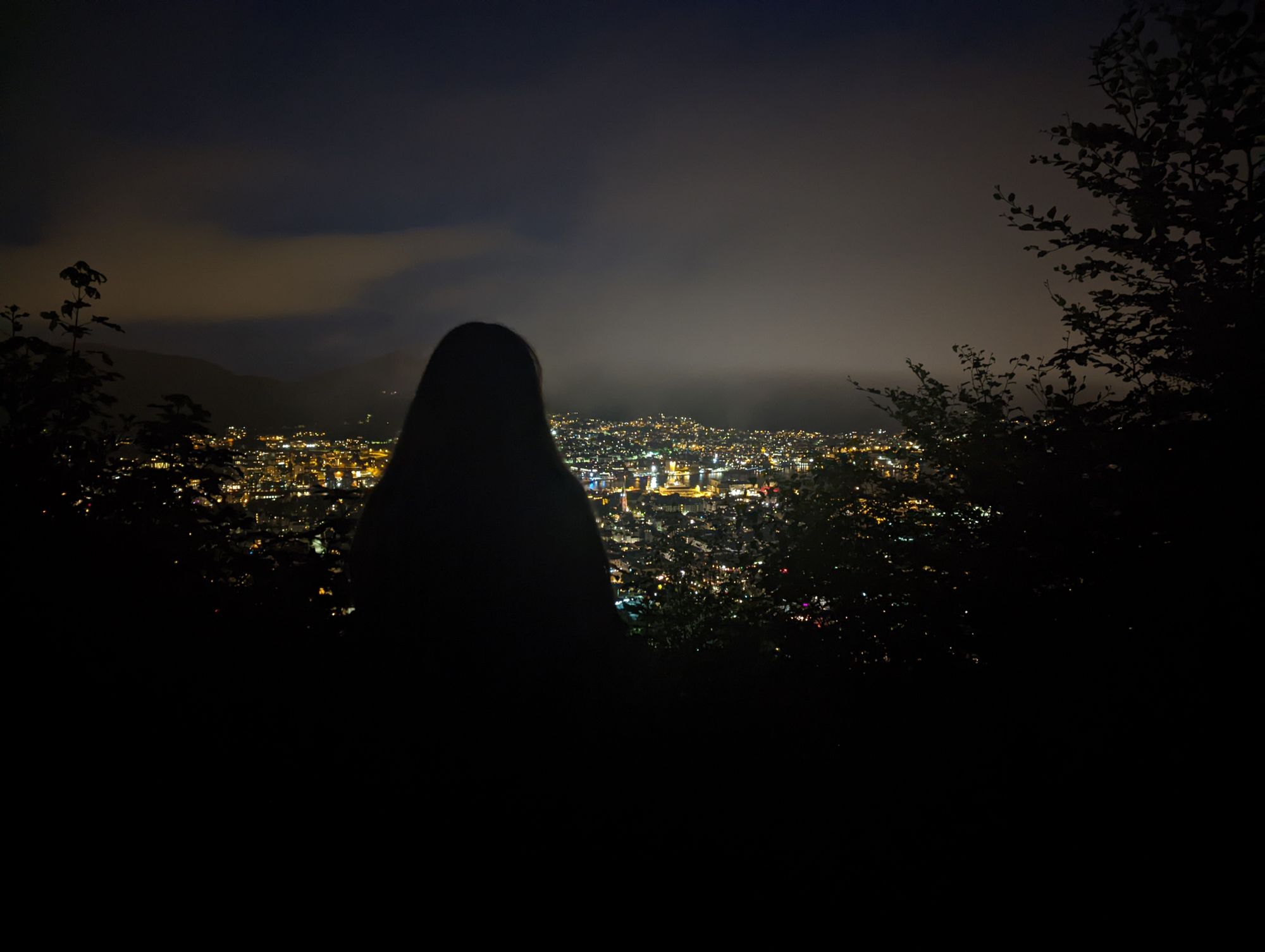 Da einige schon sehr müde waren, entschieden wir uns heim zu gehen. Leider lies mich die Idee, auf den Fløyen rauf zu gehen, nicht los. Als ich dies ansprach, bekam ich von Anja Zuspruch. Somit trennten wir zwei uns von der Gruppe und wir wanderten noch zu den Fløyen hinauf. Wie gesagt, es war keine Wanderung geplant, geschafft habe ich dies aber nicht. Es war auf jeden Fall wert!
