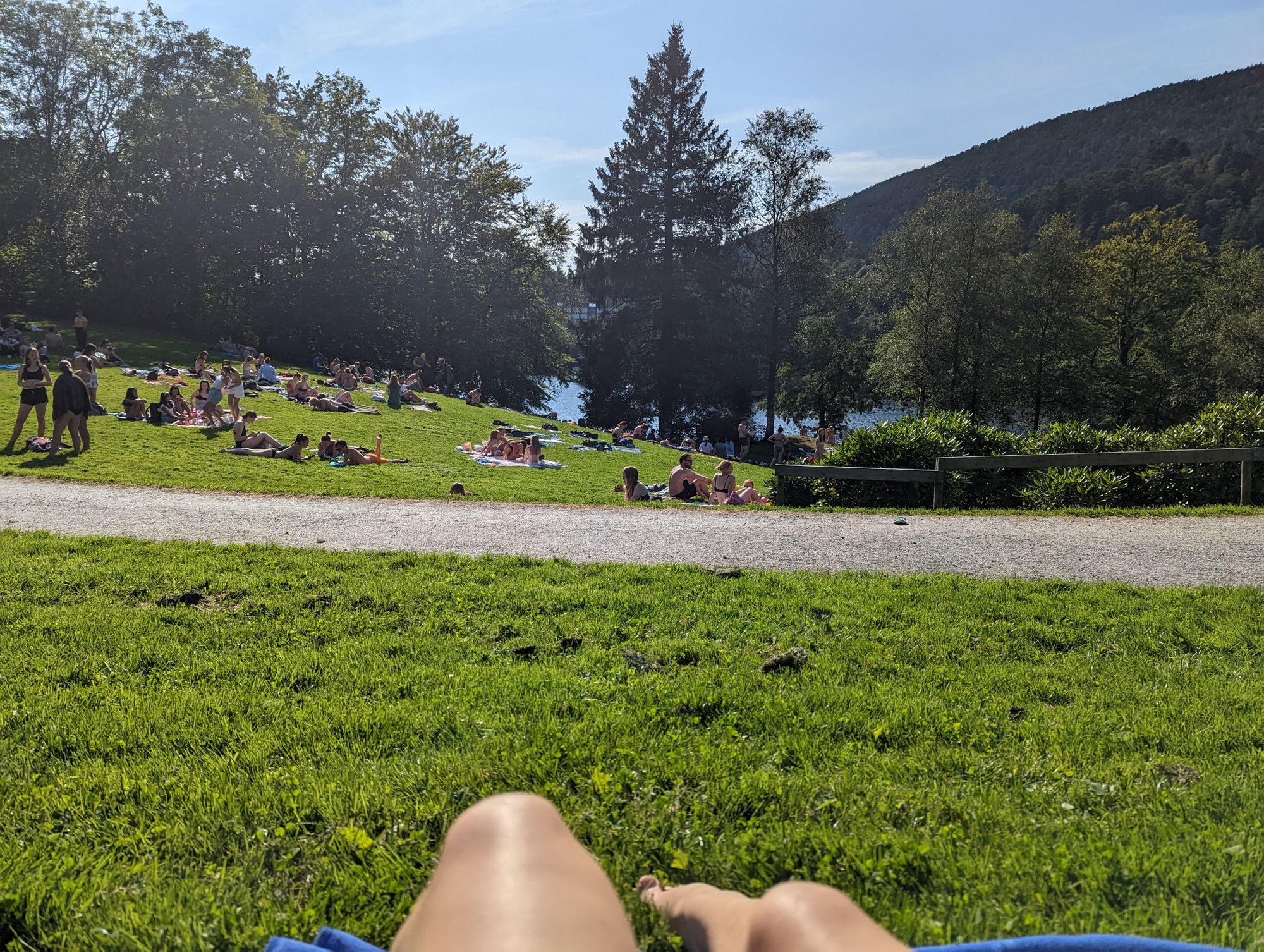Das Schloss war von der Liegewiese auch recht gut ersichtlich und gab einen schönen Blick auf die Landschaft. Leider waren wir eindeutig nicht die einzigen mit der Idee, dort am Strand zu liegen.