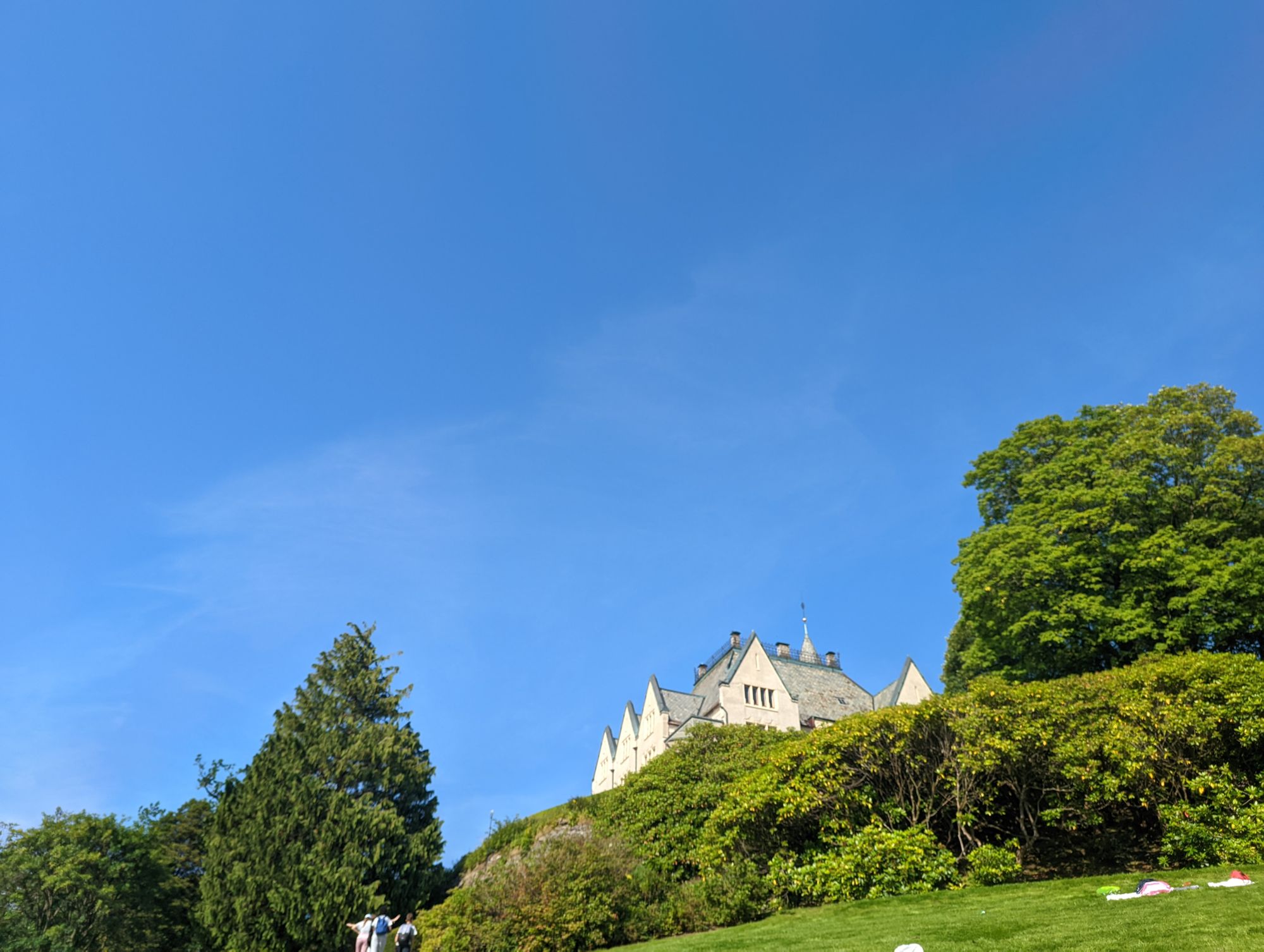 Bis zu 25°C waren angesagt, aus diesem Grund entschieden wir uns ins Meer zu springen anstatt wieder eine weitere Wanderung zu planen. Doch am Vormittag ging es für uns auf ein Event von Fantoft, wo wir kostenlos bis zu 5 Produkte kostenlos mitnehmen konnten. Da die Schlange lang war und wir nur sehr weit hinten standen, gab es bei uns nichts wirklich brauchbares mehr. Aus diesem Grund ging es für mich ohne großen Erfolg zurück. Jedoch muss ich sagen, dass das Popcorn, dass während dem Event ausgeteilt wurde, extrem gut war. Nach 5 so kleinen Popcorntüten waren wir auch alle satt und gingen zu Gamlehaugen, einen Schloss am Meer.