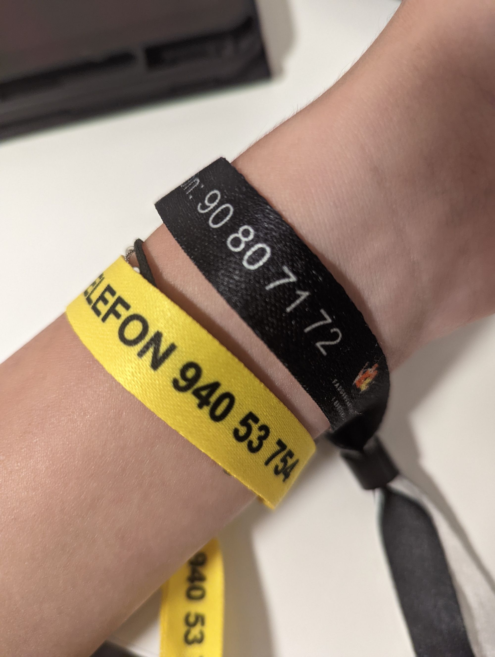 Fadder heißt übrigens sowas wie Parte und barn heißt Kind - also Partenkind. Die Fadder trugen ein pinkes Shirt. Außerdem habe ich noch zwei Stoffbänder mit Telefonnummern bekommen.