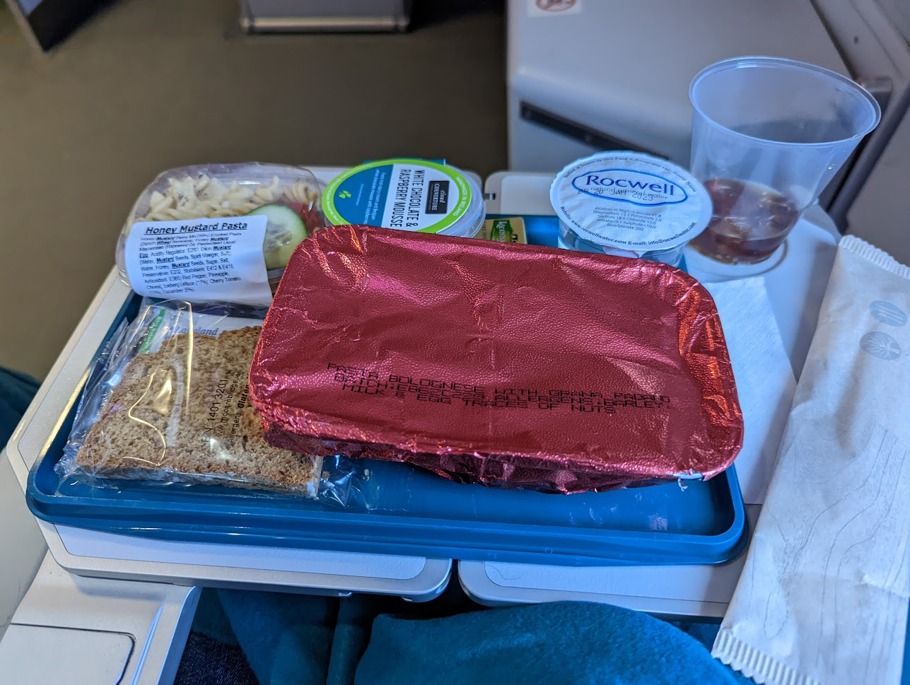 Von meinem Sitzplatz aus konnte ich recht gut in die Kombüse spechteln und sehen was alles zubereitet wurde, leider zogen auch die ganzen Essensgerüche, auch die aus der Businessclass, zu mir was meinen Hunger vergrößerte.