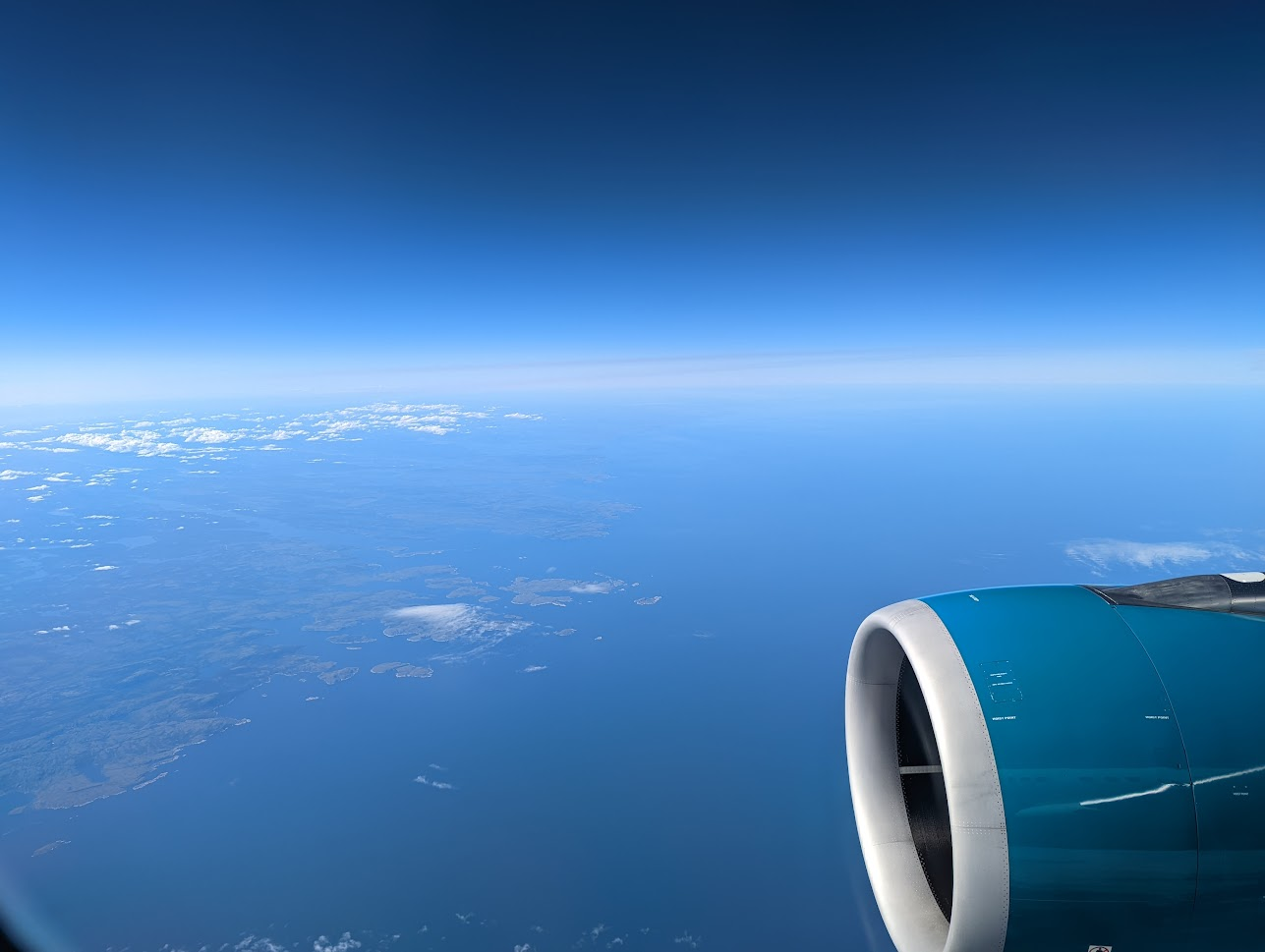 Kurze Zeit später wurde es dann endlich landschaftlich interessant und ich hatte Glück, dass das Wetter so gut war. Der erste Blick auf Nordamerika und die Karte zeigte, dass wir deutlich nördlicher sind als gedacht und zwischen Neufundland und St. Pierre und Miquelon durchflogen. Ab dem Zeitpunkt konnte ich mich nicht entscheiden ob ich lieber schlafen wollte oder doch aus dem Fenster schauen und die wunderschöne Seenlandschaft Kanadas bewundern. Meine Sitznachbarin muss schon fast am verzweifeln gewesen sein, weil ich ständig die Jalousien schloss und wieder öffnete. Schlussendlich beschloss ich nicht zu schlafen, auch zum Teil dank des schreienden Kinds quer hinter mir.